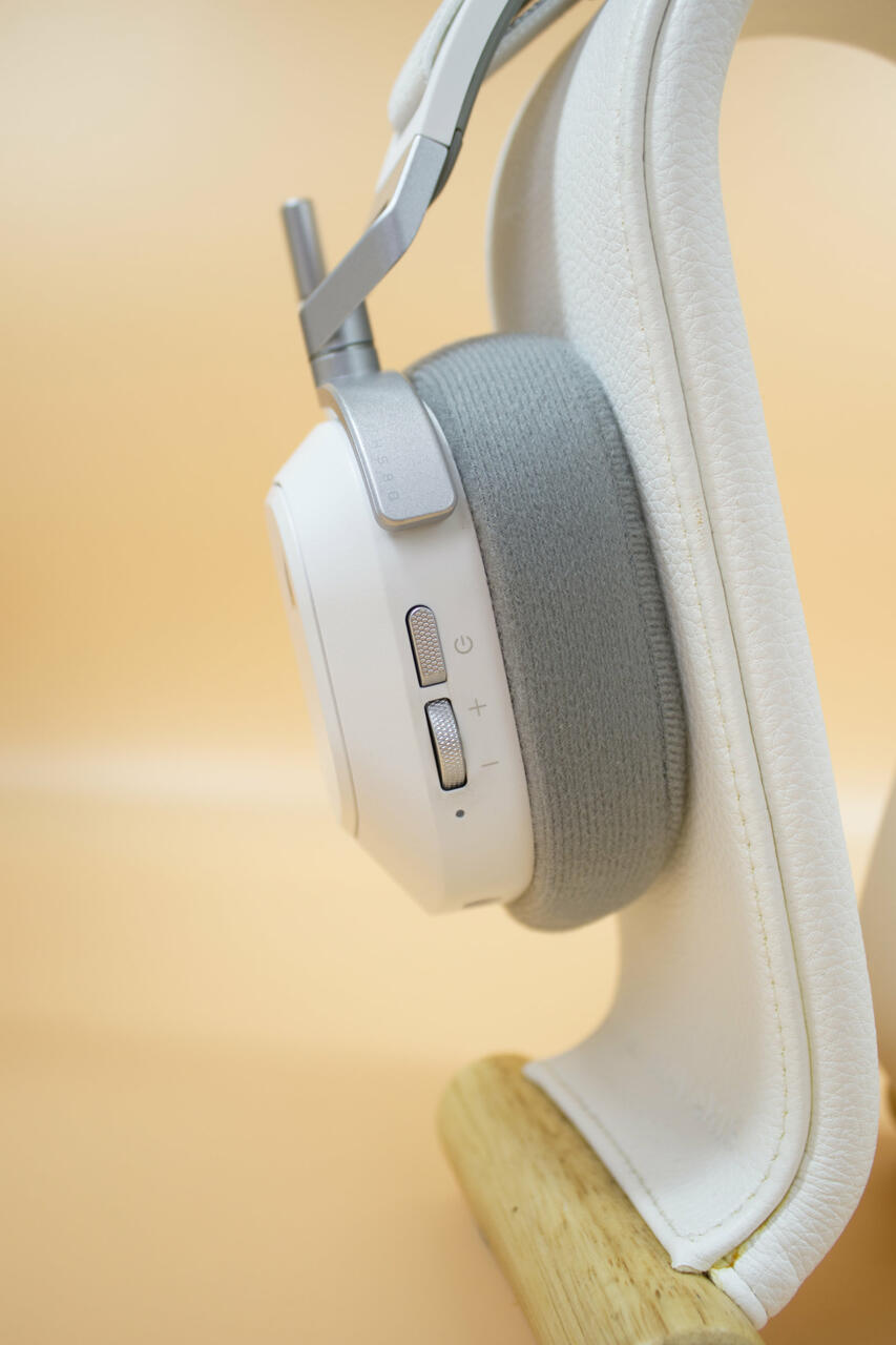 Das HS 80 MAX ist aus einem guten Teil aus sich wertig anfühlenden Plastik gefertigt worden. Kleinere Metallteile ergänzen das Ganze an strukturell belasteten Stellen. Die Knöpfe haben einen guten Druckpunkt und sitzen relativ gut im Gehäuse. Das Lautstärkerädchen ist rastend und lässt sich ohne viel Wiederstand drehen. Das einzige was nicht so recht passen will ist der Klettverschluss zum Einstellen des Anpressdruckes auf die Ohren. Denn dies ist recht fummelig und wenn mehrere Personen das Headset nutzen dann kann das ganze schon ein wenig problematischer werden. Jedoch wenn man das Headset alleine nutzt, ist nachdem man den richtigen Abstand gefunden hat auch dieser Umstand schnell vergessen und es verrichtet seinen Dienst. Das Ohrmuschelplüsch ist weich und der Schaumstoff darunter hat auch eine angenehme Steifigkeit, so dass man das Headset kurz nach dem Aufsetzen auch schon wieder vergessen hat. Die nur knappen 350 Gramm Gewicht des Headsets helfen dabei den Tragekomfort auf einem hohen Maß zu halten. Die Ohrmuscheln waren für unsere Ohren groß genug und es kam zu keinerlei Irritationen durch Vibrationen oder durch Berührung der Ohrmuschel wo sie nicht sein soll.