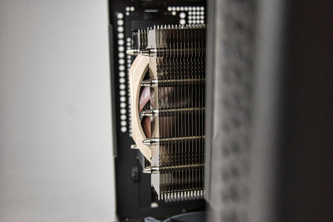 Der Brocken 4 reizt mit seiner Höhe von 155 mm dabei die maximale Größe eines CPU-Kühlers im IM-1 Pocket voll aus, der NH-D12L ist als Twin-Tower mit nur einem Lüfter mit rund 144 mm noch etwas kompakter. Beide Kühler können jedoch im Test beeindrucken und den schon recht leistungsfähigen AMD Wraith Prism regelrecht deklassieren: