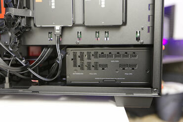 Der Zusatz „Shift“ im Namen deutet auf die verschobenen Buchsen hin, die sich hier an der Seite befinden. Diese Verlagerung hat sich beim Einbau und beim Kabel-Management als sehr hilfreich erweisen. Bei herkömmlichen Netzteilen ist es schon eine Herausforderung, falls man eines der modularen Kabel vergessen hat an das Netzteil anzuschließen, oder ein Upgrade macht. Das haben wir schon häufig erlebt. Manchmal ist man dann gezwungen die anderen Kabel wieder zu entfernen, um die richtige Buchse zu erreichen oder gar zu finden. Beim RM1000x Shift ist es ganz anders, denn hier sieht man direkt alle Anschlüsse und kann die Kabel auch besser verteilen.