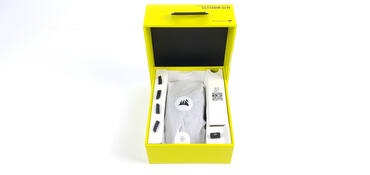 Die Verpackung der M75 Wireless ist kompakt, aber dafür sehr hochwertig. Dicke Pappe schützt die Maus zuverlässig. Das für Corsair übliche Schwarz-Gelbe Design ist sehr ansprechend. Auf der Oberseite ist die Maus zu sehen. Dabei wird direkt deutlich, dass die Maus über eine RGB-Beleuchtung verfügt. Daneben ist die Bezeichnung der M75 Wireless zu sehen. Darunter erkennen wir das iCUE-Logo.