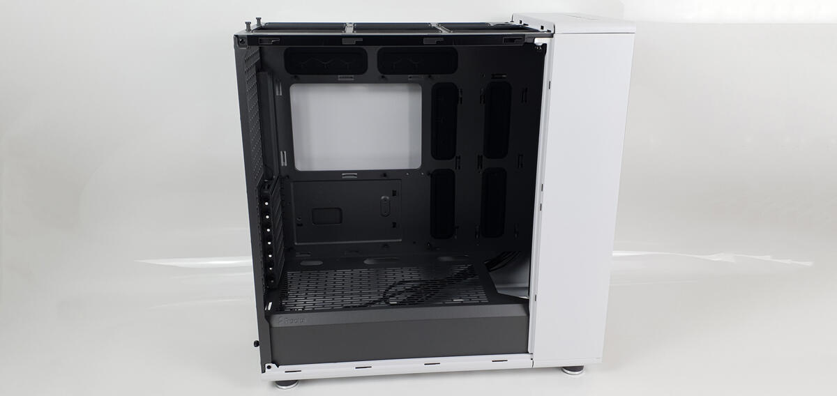 An der Verarbeitung des North XL gibt es nichts auszusetzen. Das Gehäuse ist weder anfällig für Kratzer noch für Fingerabdrücke. Das Gehäuse besteht aus hochwertigen Materialien und ist ebenso hochwertig verarbeitet worden. Es ist sehr solide und kann auch Belastungen standhalten. Beide Seitenteile lassen sich problemlos öffnen und auch mit verbauter Hardware und Kabellage einfach wieder schließen. Um die Kabel von der Rückseite in den vorderen Innenraum zu bringen, gibt es reichlich Durchführungen. Diese sind mit Sichtblenden aus Gummi versehen. Diese Sichtblenden sind hochwertig verarbeitet und schließen die Durchführung gut ab. Vor dem Netzteil gibt es ausreichend Platz, um übrige Kabel einfach zu verstauen. Für die zu verlegenden Kabel gibt es genug Klettverbinder. Außerdem sind an einigen Stellen noch Ösen für Kabelbinder angebracht. Für die drei vorderen Lüfter gibt es einen kleinen PWM-Hub, welcher über ein Kabel mit dem Mainboard verbunden wird. Der Hub hat noch Platz für einen zusätzlichen Lüfter.