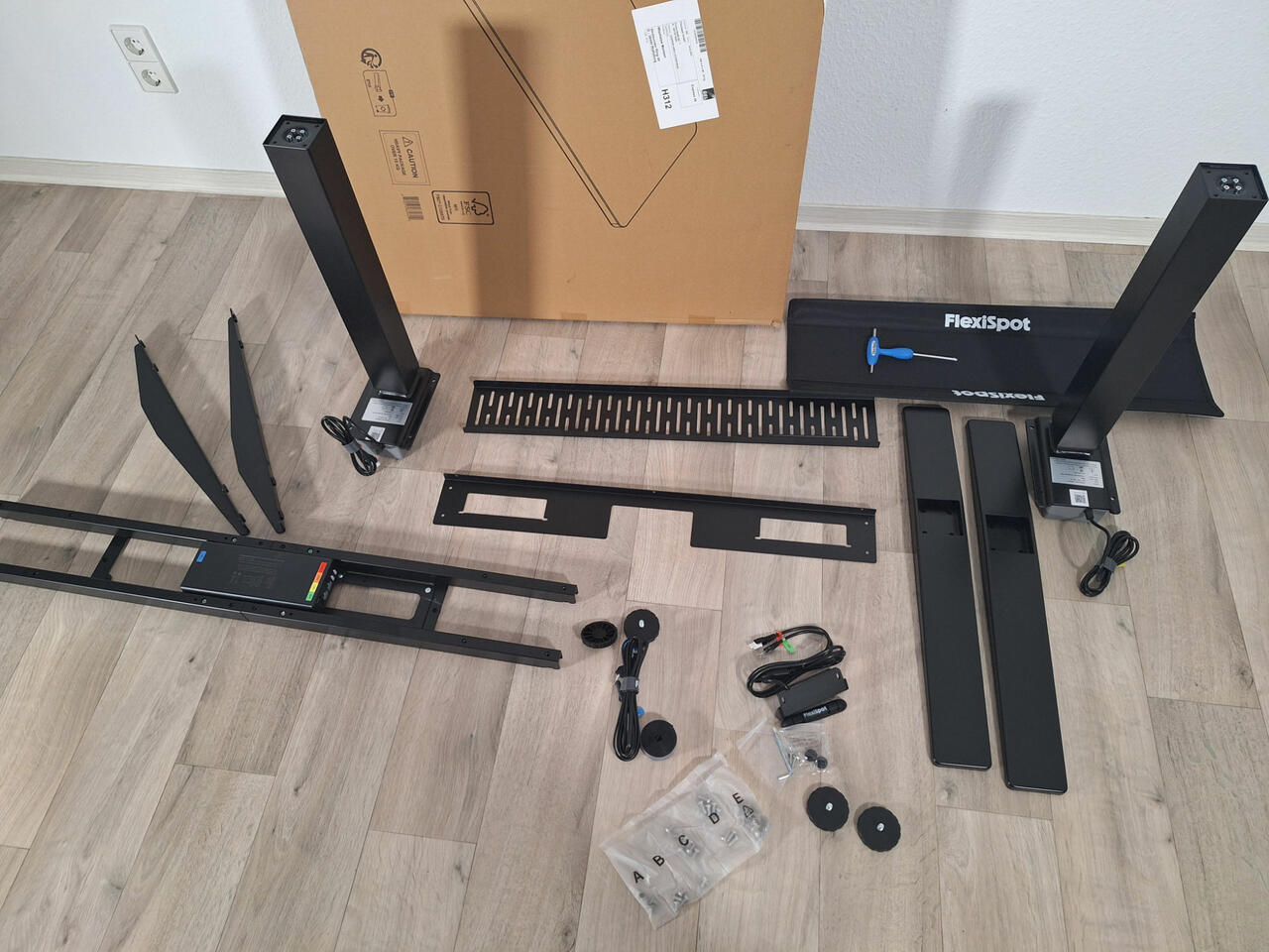 Auf der FlexiSpot Webseite könnt ihr das elektrisch verstellbare Tischgestell in den Farben weiß oder schwarz (Stand 05/2024) bestellen. Für das Tischgestell ist eine Tischplatte in den folgenden Maßen vorgesehen: Länge (1200 mm - 2000 mm) x Breite (600 mm - 800mm) x Höhe (>18 mm | Kernloch!). Passend zum Tischgestell bietet FlexiSpot verschiedene Tischplatten in verschiedenen Materialien, Farben und Größen an. Solltet ihr alternativ eigene Vorstellungen haben oder bereits eine Tischplatte mit dem empfohlenen Größen besitzen, ließe sich auch dies entsprechend der Anleitung auf das Gestell montieren.