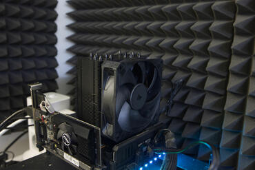 Da die CPU keine iGPU hat, musste eine Grafikkarte verwendet werden. Wir haben die MSI GeForce GT 730 verwendet. Die Karte ist klein und hat einen Lüfter. Für die Schallpegelmessung haben wir diesen angehalten. Da der Lüfter klein ist und die Luft nicht in Richtung CPU-Kühler drückt, hat dieser unserer Ansicht nach, keinen relevanten Einfluss auf die Messungen der Leistung.