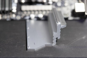 Die Spannungsversorgung wird von zwei Kühlkörpern bedeckt. Diese lassen sich über jeweils zwei Schrauben lösen. Die Kühlerblöcke bestehen aus Aluminium und sind so gestaltet, dass sie passiv oder mit wenig Luftfluss im Gehäuse die Wärme abführen können. Es sind hierfür diverse Rillen und Ausschnitte vorhanden, was auch die Fläche zum Abführen der Abwärme erhöht.
