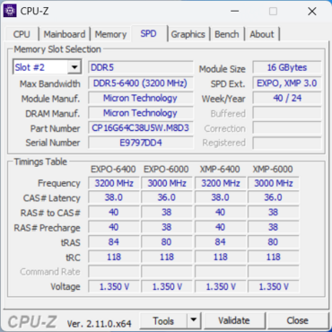 Crucial DDR5 Pro Overclocking 32GB DDR5 6400 CPUz SPD (Bild © PCMasters)