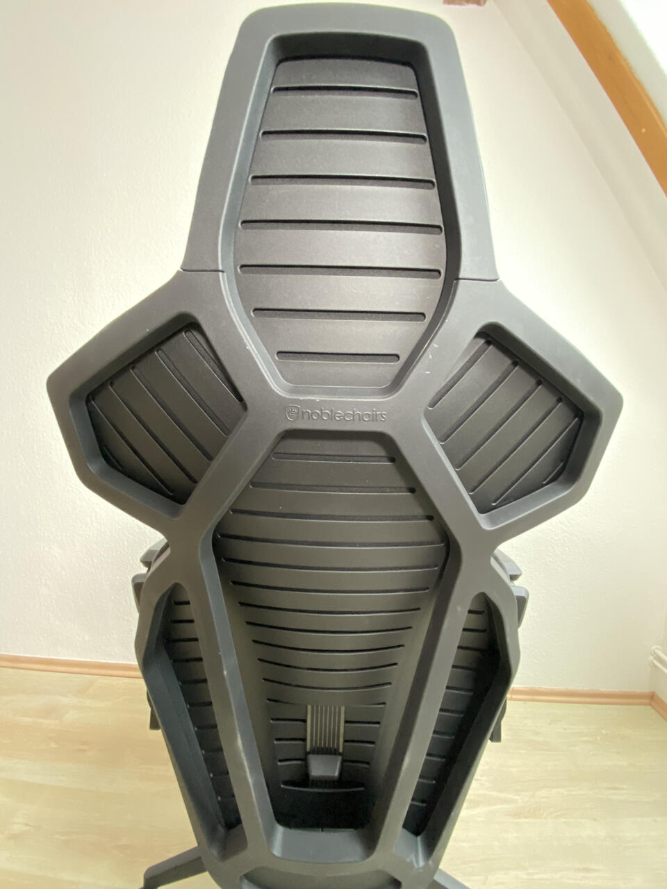 Auf Nachfrage bei noblechairs wurde uns mitgeteilt, dass die Synchronmechanik automatisch auf das Nutzergewicht abgestimmt und optimal eingestellt ist, weshalb sie in der Anleitung nicht explizit erwähnt wird. Unserer Erfahrung nach ist die Sitzspannung tatsächlich sehr geschmeidig und bietet genau den richtigen Widerstand beim Zurücklehnen. Solltet ihr dennoch eine Feinjustierung wünschen, könnt ihr diese über den Regler vornehmen.