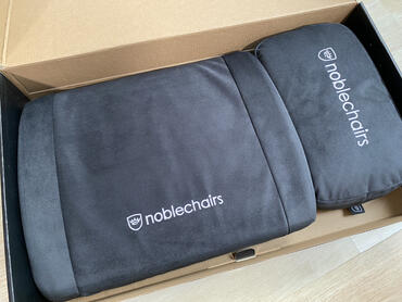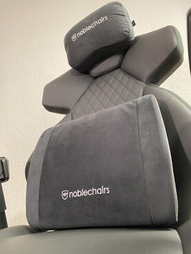 Wir haben bei noblechairs nachgehakt und tatsächlich sind die Kissensets nicht für den DAWN konzipiert. Dennoch wollten wir uns selbst überzeugen und haben zum Ausprobieren das "Memory Foam Kissenset" mit dem noblechairs Aufdruck gestellt bekommen.