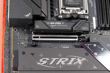 So bekommt man neben einem PCI-Express 5.0-M.2-NVMe-Slot auch auch drei weitere, die mit PCI-Express 4.0 angebunden sind. Diese erweisen sich auch als schnelle Interfaces. Hinzu kommt, dass die werkzeuglose Montage vorbildlich gelöst wurde. Vor allem der Kühler für den ersten M.2-NVMe-Slot ist groß und sehr gut dimensioniert. Doch auch die anderen drei M.2-NVMe-Slots werden von einem großen Alu-Kühler bedeckt und damit gut gekühlt.