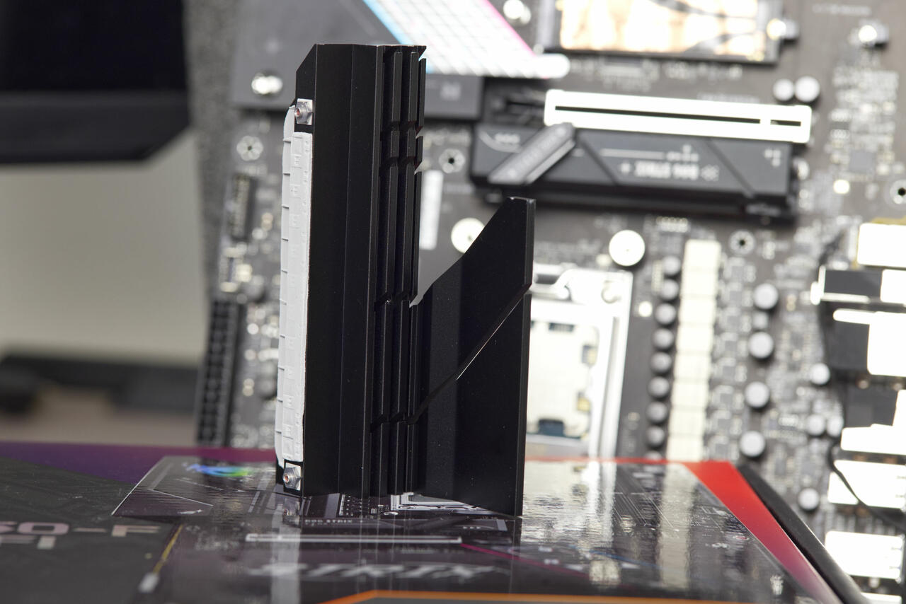 Befestigt werden die SSDs über das sogenannte M.2 Q-Latch. Das ist ein cleverer Mechanismus, der den Ein- und Ausbau von M.2 SSDs vereinfacht. Durch den Austausch der typischen Schrauben gegen einen halbrunden Riegel können M.2-SSDs mit einem schnellen Fingerschnippen ohne Werkzeug befestigt und gelöst werden. Oftmals hat man nur eine Hand frei und genau hier hilft der Mechanismus.