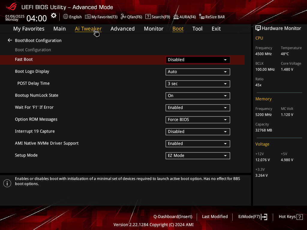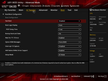 Wenn man das BIOS aufruft, findet man ein gut strukturiertes Menü, das das Laden von EXPO-Profilen und die Konfiguration von Boot-Optionen erleichtert. Der EZ-Mode zeigt vieles auf einen Blick und richtet sich eher an Nutzer, die nicht die Fülle an Funktionen sehen will.