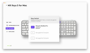 Die MX Keys S funktioniert an unserem Mac auch schon ohne Software recht gut. Nur einige wenige Sondertasten zeigen noch keine Funktion, wie etwa die des Taschenrechners. Nach der Installation erledigt sich das Problem aber von selbst und alle Tasten funktionieren auf Anhieb, wie aufgedruckt. Mit der Software können wir jetzt einige individuelle Einstellungen in Hinblick auf die Tastenbelegung der Sondertasten treffen.