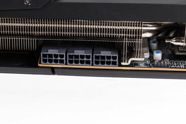 Unter der Haube sorgt ein 18-Phasen-VRM-Design (12+1+3+2) für eine stabile Leistungsabgabe unter Last und bietet gleichzeitig reichlich Spielraum für umfangreiche Übertaktungen. Die Karte ist mit drei 8-poligen Stromanschlüssen ausgestattet und nutzt die DrMOS-Technologie mit digitaler IMON-Echtzeitüberwachung, um die Energieeffizienz weiter zu optimieren.