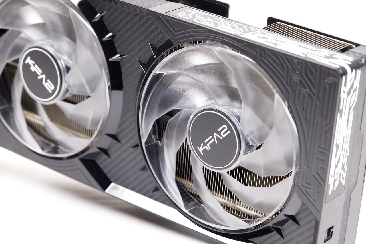 KFA2 hat die Grafikkarte sehr kompakt gehalten, was den negativen Effekt hatte, dass sie zu den lautesten Grafikkarten machte. Die Verarbeitungsqualität ist gut und der Kühler ist technisch gesehen solide. Auch die minimalistische, weiße Beleuchtung ist ein nettes Addon.
