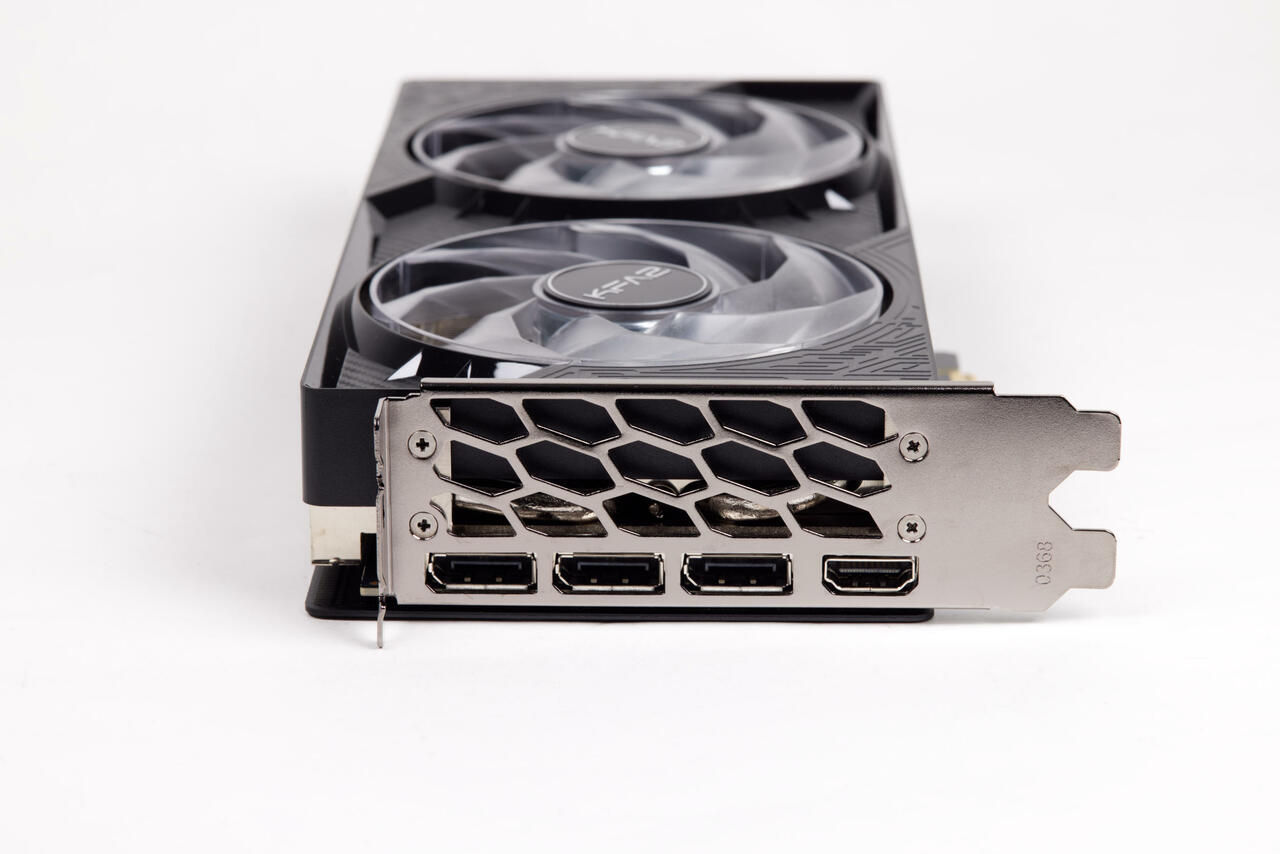 KFA2 hat bei seinem Kühler nicht gespart, auch wenn die Grafikkarte kompakt ist. Der Kühlkörper ist mit der Backplate und dem I/O-Shield fest verschraubt und die gesamte Konstruktion verleiht der Grafikkarte mehr Steifigkeit.