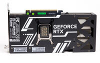 Die Lamellen werden über fünf Kupfer-Heatpipes mit der Bodenplatte verbunden. Auf der Seite in Richtung Videoausgänge sind sie durchgehend gepresst und haben direkten Kontakt mit den Spannungswandler-Elementen. Die gesamte Kühlkonstruktion ist durch eine Nickelschicht veredelt. Die Lamellen sind aus Aluminium und die Bodenplatte scheint aus Kupfer zu sein. Außerdem ist die Bodenplatte breiter und bedeckt auch die GDDR7-Speicherbausteine, von denen nur 6 statt der 8 möglichen verbaut werden.