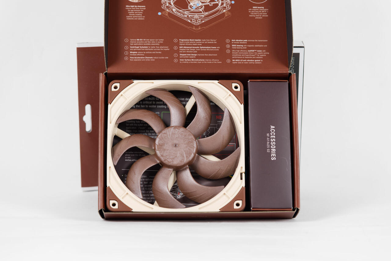 Das Noctua-Erlebnis fängt schon bei der Verpackung an, die nun noch schicker ist und auf Plastik weitestgehend verzichtet. Der NF-A14x25 G2 PWM sieht bei einem Direktvergleich deutlich verändert aus.