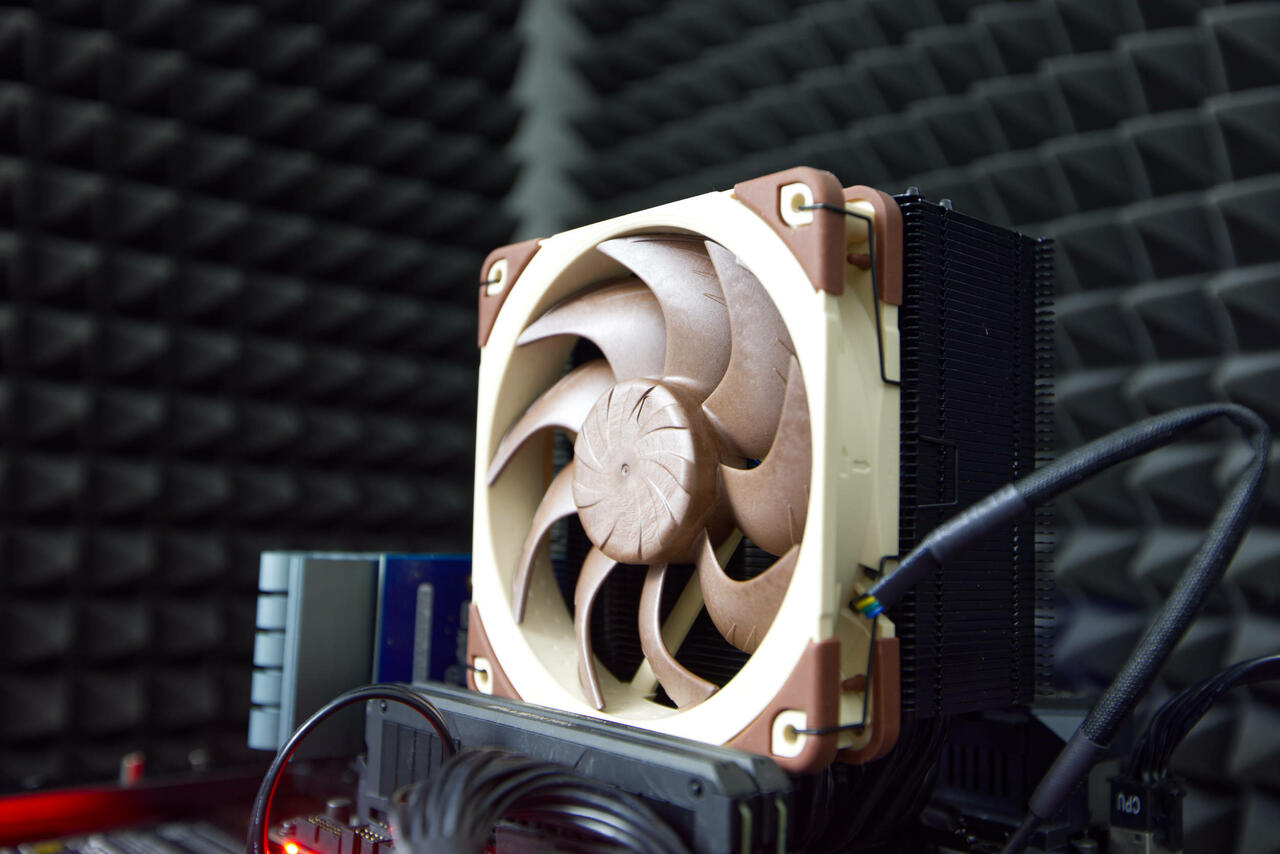 Jeder Lüfter ist auf dem Noctua NH-U12A chromax.black montiert worden. Für die Leistungsmessung ist die besagte CPU mit OCCT Version 12.1.18 für 10 Minuten belastet worden. Dabei sind alle Messwerte erfasst worden und auch der Schallpegel gemessen worden. Einstellungen für CPU-Lasttest: Extreme, Steady 1 Cycle AVX2 Instruction, Auto Threads.