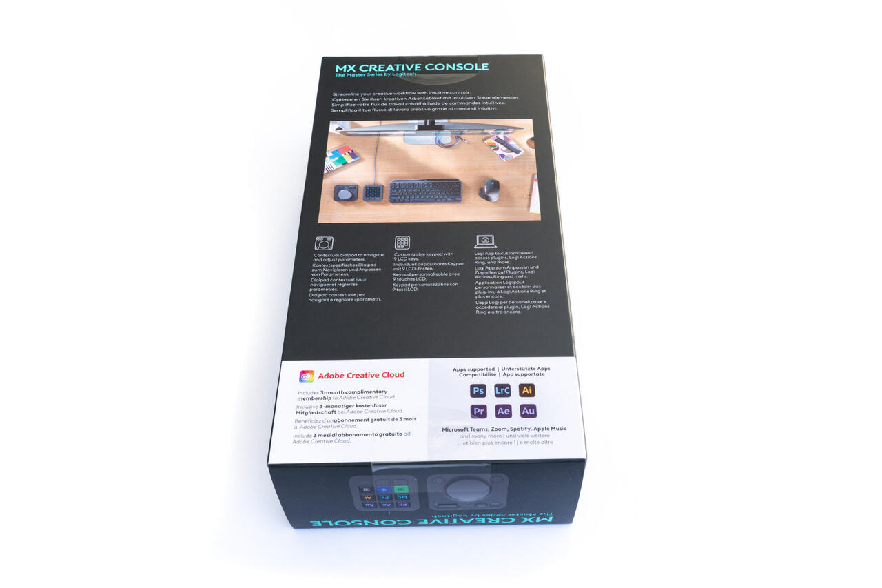 Ein kleines Papierheft mit den Sicherheitsinformationen gibt es ebenso und wie üblich verweist Logitech auf die hauseigene Software, die für den vollen Funktionsumfang zwingend benötigt wird. Auf weitere zusätzliche Extras wie etwa eine Transporttasche hat der Hersteller verzichtet. Als kleiner Zusatz liegt aber noch ein dreimonatiger Adobe Creative Cloud Zugang bei.