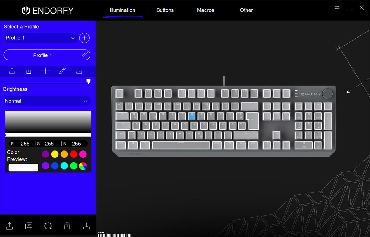 Reiter eins ist die Illumination, welche sich um die Beleuchtung der Tastatur kümmert und dort kann dann man sich austoben und alle Einstellungen können in 3 verschiedenen Profilen gespeichert werden.