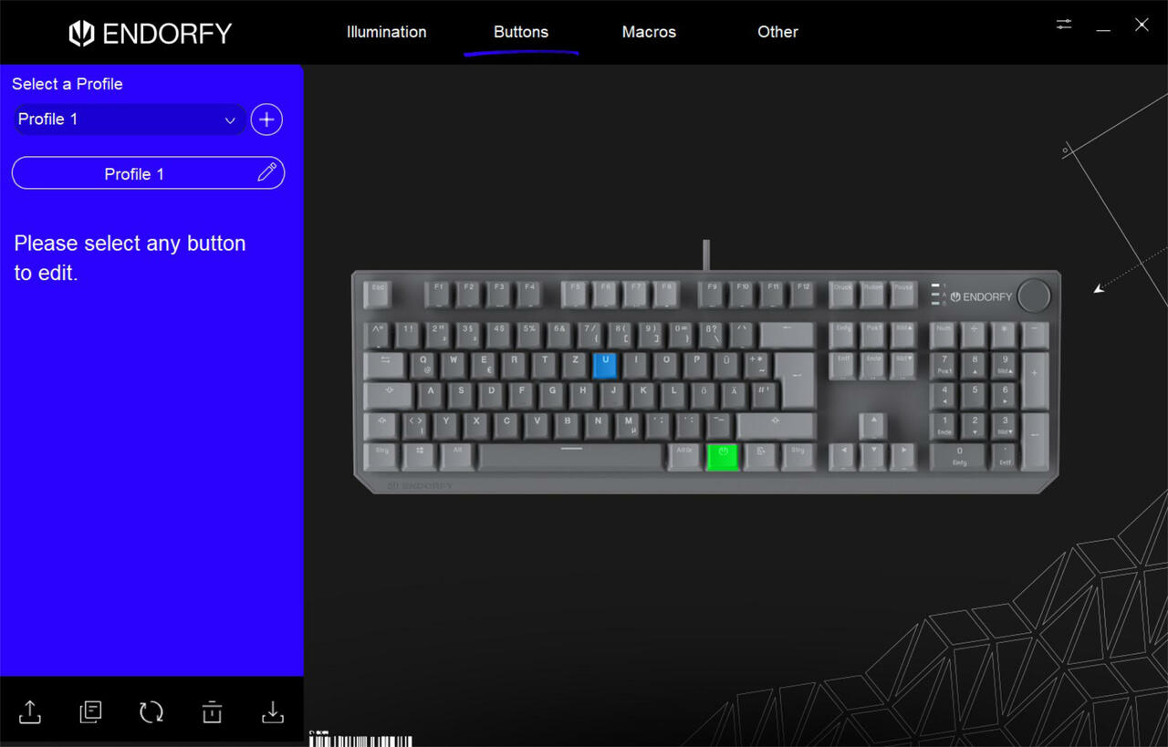 Unter dem 2. Reiter welcher sich Buttons nennt können Tastenkonfigurationen erstellt werden um z.B. ein eigenes Mapping zu erstellen. So kann aus einem a ein u werden, ganz nach eigenem Geschmack.