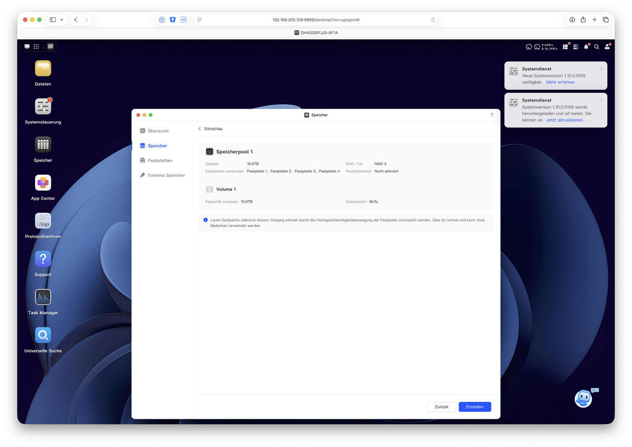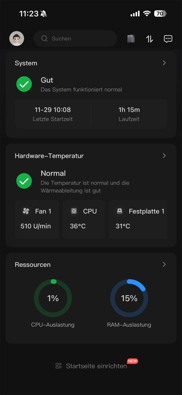 Die Oberfläche wirkt runder, reaktionsfreudiger und an mehreren Stellen durchdachter als noch bei den älteren Modellen. Alles ist logisch angeordnet, sodass man sich auch ohne NAS-Erfahrung schnell zurechtfindet. Dashboard, Systeminformationen und Statusanzeigen sind direkt erreichbar, ohne dass man lange durch verschachtelte Menüs klicken muss.