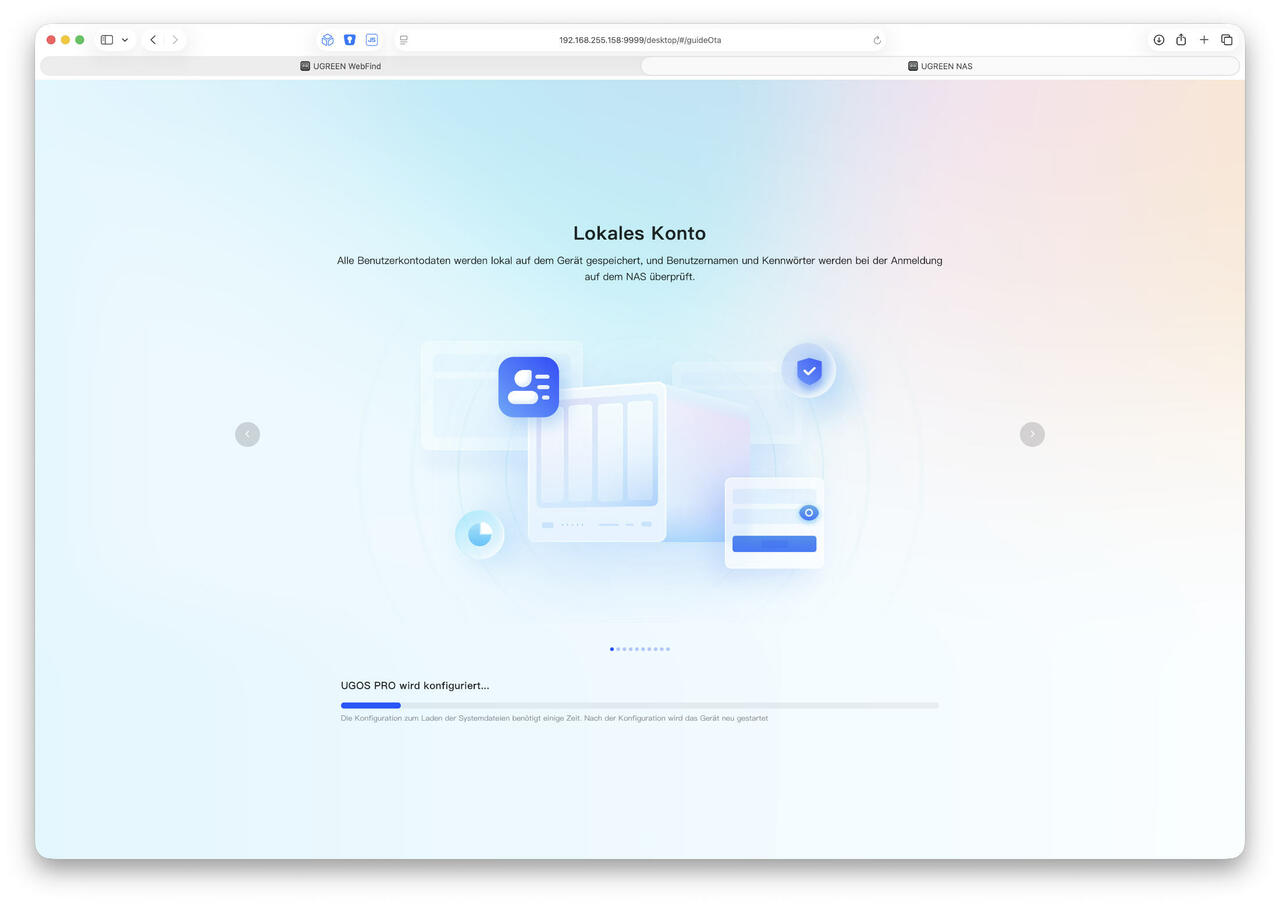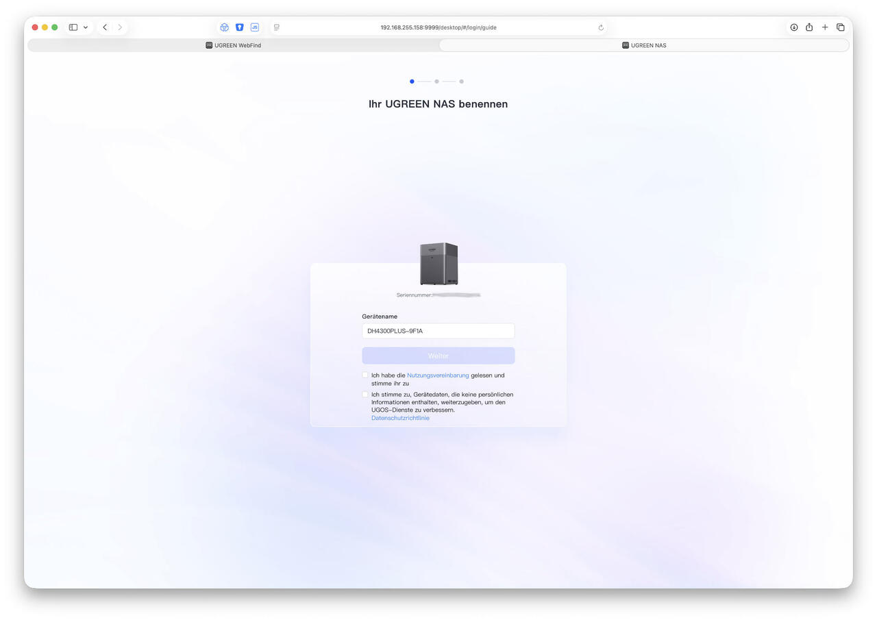 Die eigentliche Einrichtung läuft über den Browser oder die App. Das NAS taucht im Netzwerk automatisch auf und lässt sich ohne langes Suchen ansteuern. Gleich zu Beginn werden wir durch eine übersichtliche Ersteinrichtung geführt, die alle grundlegenden Schritte abfragt. Das wirkt alles angenehm logisch aufgebaut, auch wenn man nicht täglich mit NAS-Systemen zu tun hat.