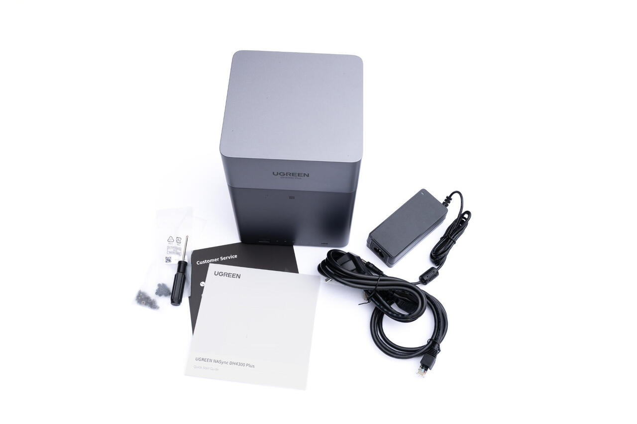 Zum Lieferumfang gehört alles, was man für den sofortigen Start braucht. Neben dem eigentlichen NAS befindet sich ein passendes Netzteil mit Netzkabel im Karton, ebenso ein Cat-6-LAN-Kabel für den Anschluss ans Netzwerk. Außerdem legt UGREEN ein Schraubenset für den Einbau von 2,5-Zoll- und 3,5-Zoll-Laufwerken bei sowie einen kleinen Schraubendreher. Eine mehrsprachige Schnellstartanleitung rundet das Paket ab und erklärt verständlich die ersten Schritte, sodass auch Einsteiger ohne große Hürden loslegen können.