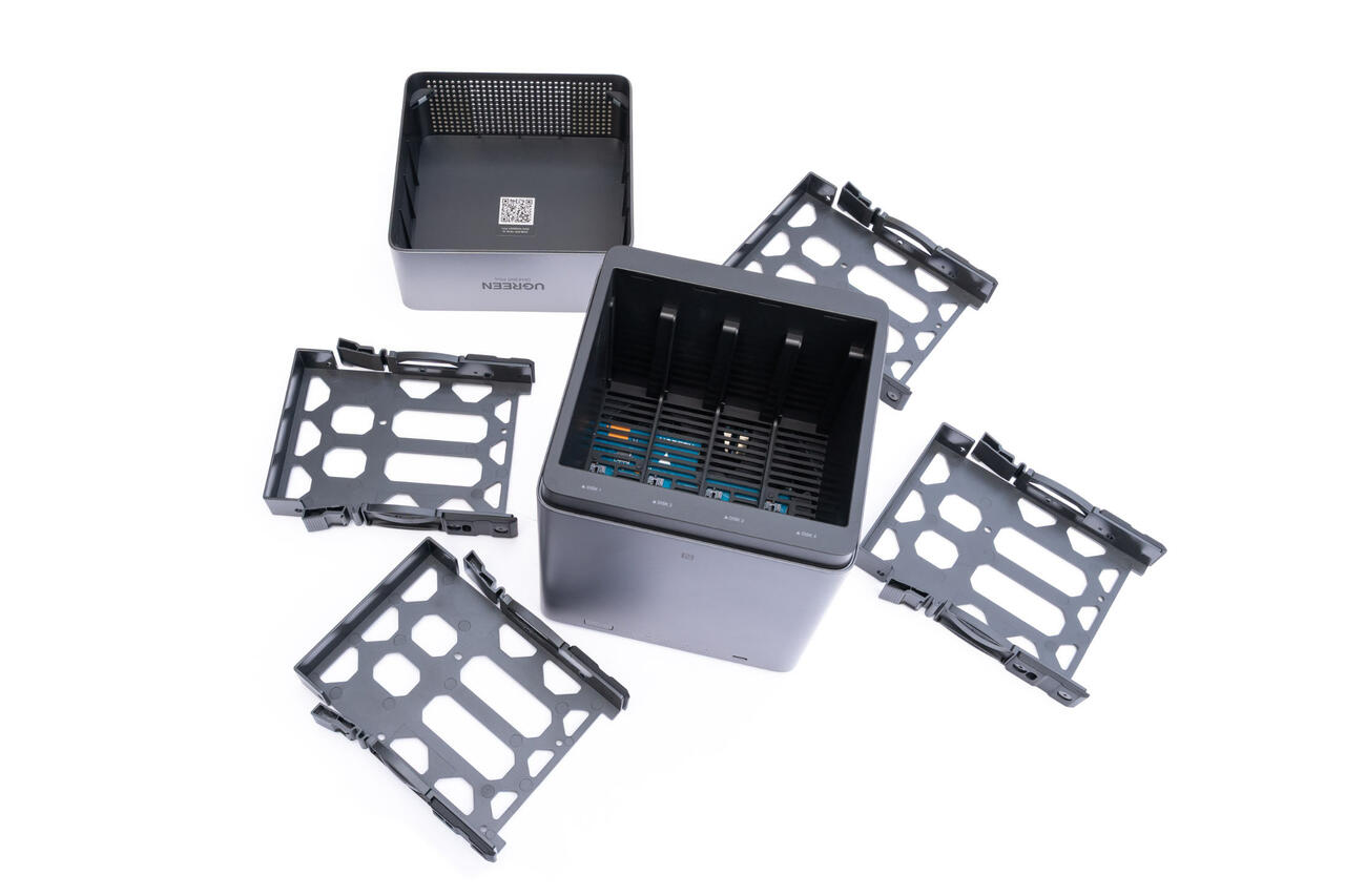 Ein weiterer Pluspunkt ist der leise Betrieb. Auch bei vier verbauten Festplatten und unter Last bleibt das Gerät unaufdringlich, die Lüfter arbeiten effizient und nur bei Bedarf stärker, sodass das NAS problemlos im Wohnbereich oder im Home-Office betrieben werden kann.