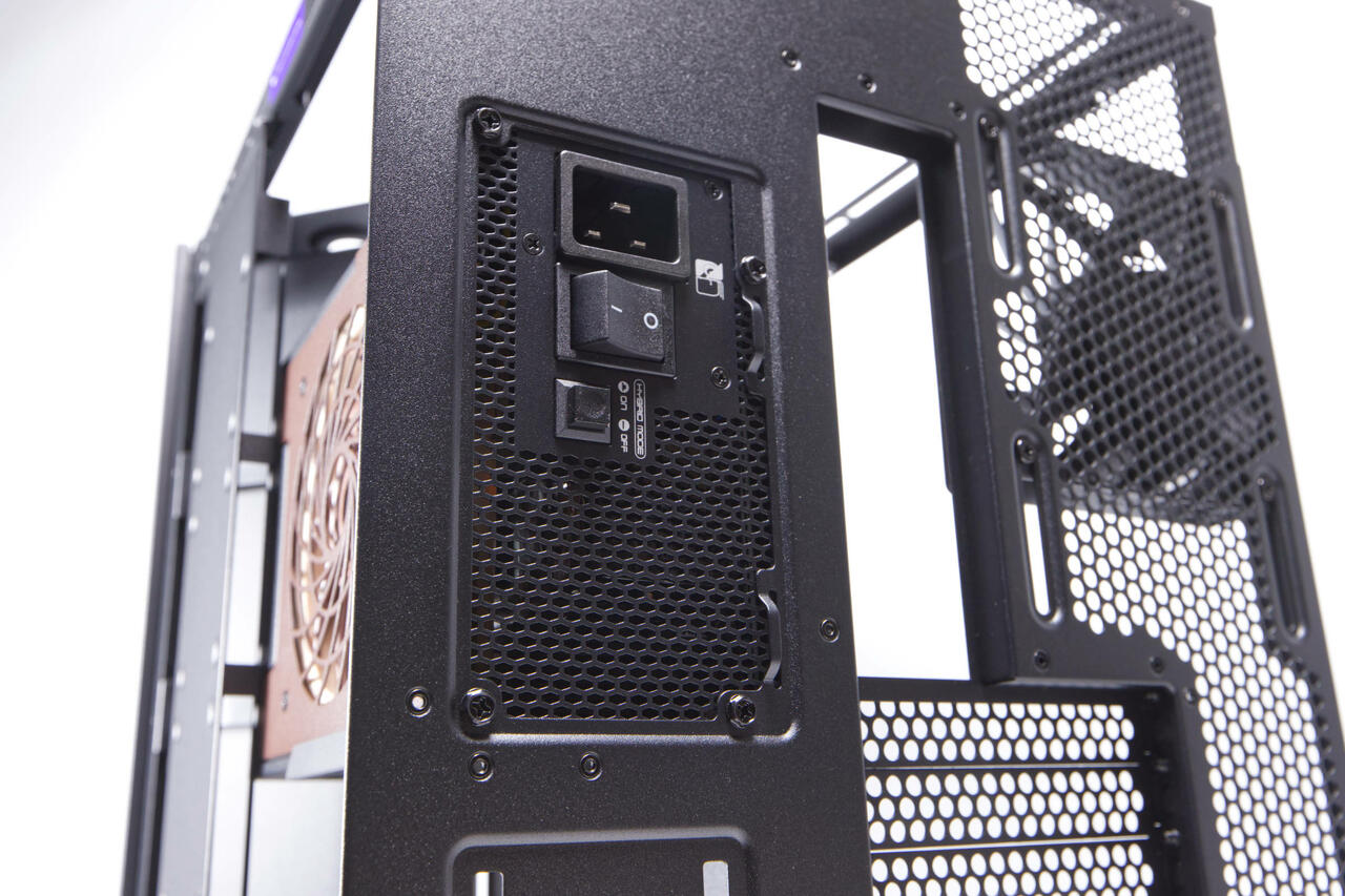 Die hintere Kammer beherbergt das Netzteil und bietet diverse Möglichkeiten für gutes Kabelmanagement, was durch angebrachte Klettverschlüsse und viele Öffnungen unterstützt wird. Dazu gibt es Back-Connect-Support und ein durchdachtes Festplatten-Montage-Tray an der Rückseite. Der viele Platz und die abnehmbaren Teile erleichtern den Einbau enorm.