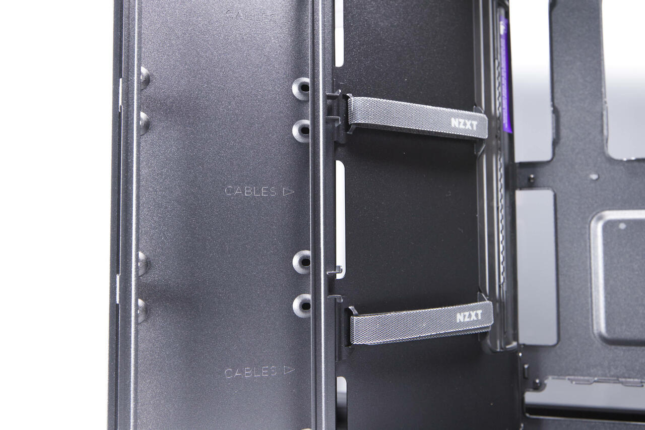 Das Kabelgewusel auf der Rückseite lässt sich gut verstecken, denn von der Front kann man kaum nach hinten durchsehen. NZXT bietet aber auch vorbildlich viel Platz und Kabelbinder und Klettverschlüsse, um die vielen Kabel richtig zu verlegen und festzumachen. Wem das nicht ausreicht, der kann die Kabelbinder und Kletten aus dem Lieferumfang nutzen, um alles nochmals sauberer zu befestigen.