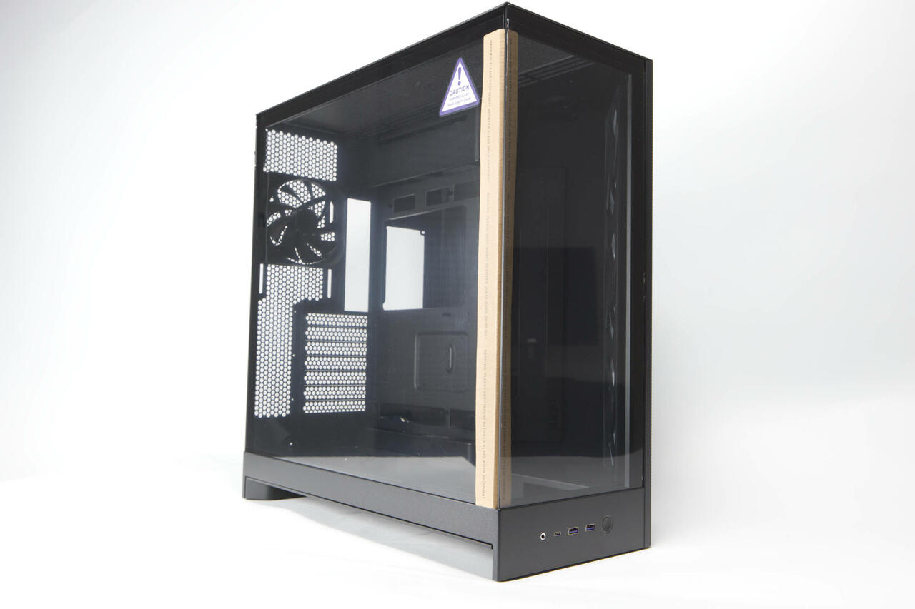 Das Gehäuse fühlt sich schwer und solide an. Durch die Streben und Konstruktion wird eine sehr hohe Steifigkeit erreicht, sogar wenn die Seitenteile alle entfernt sind. Die Front-Glasplatte ist mehrfach verschraubt und ist auch durch einen Metallrahmen gesichert, was die Steifigkeit an der Front sicherstellt.