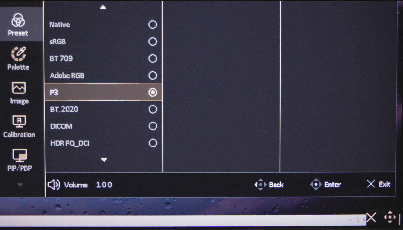 Unter den Presets können wir den Farbraum einstellen, für den die Voreinstellungen vorliegen. Nach Kalibrierung können wir angepasste Profile verwendet werden, aber die Einstellung bleibt.