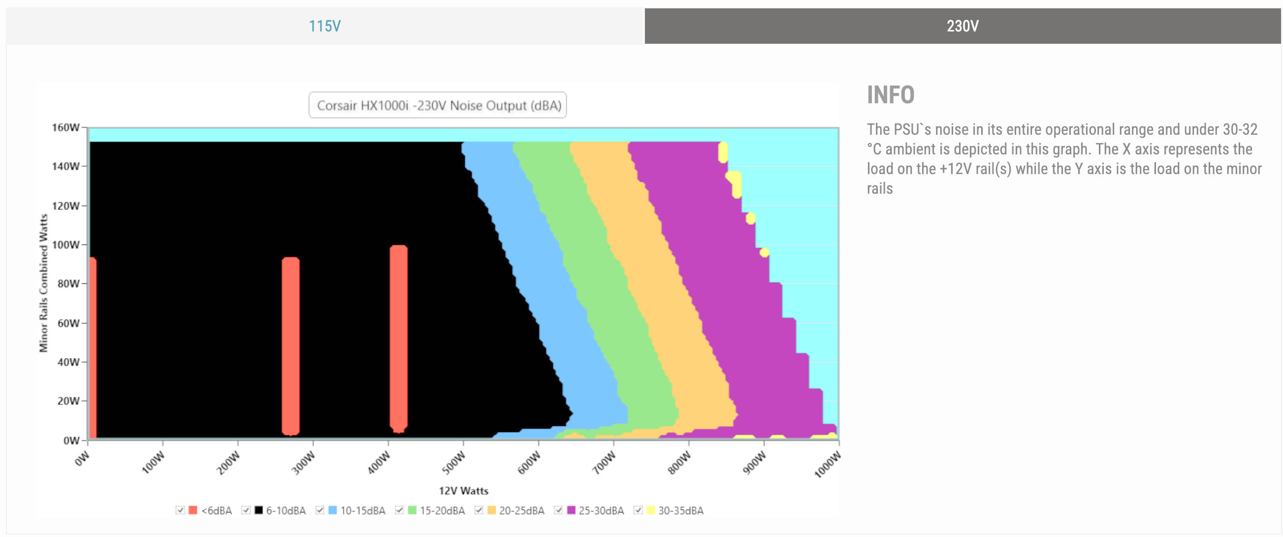 Neben der 80-PLUS-Zertifizierung, die zwar schön ist, aber inzwischen eine für Europa eher unpassende Teststelle darstellt, greifen immer mehr Netzteilhersteller auf Tests von Cybenetics zurück. Die Netzteilexperten testen und zertifizieren die Netzteile dann unabhängig. Auch das HX1000i Shift ist im Detail untersucht. Aus ihrem Report haben wir die nachfolgenden beiden Graphen entnommen. Interessierte können den kompletten Report über den Link oben einsehen.