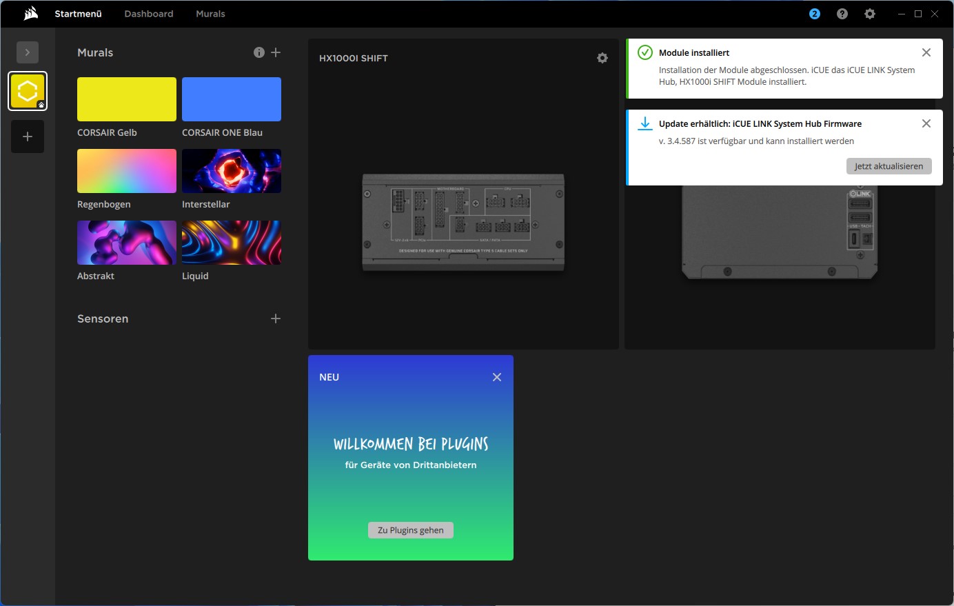 Nach dem Neustart der Software konnten wir das HX1000i Shift in der Software erkennen, aber ein Update der Hub-Software sollte installiert werden. Damit alle Bugfixes enthalten sind, haben wir alles auf den neuesten Stand gebracht.