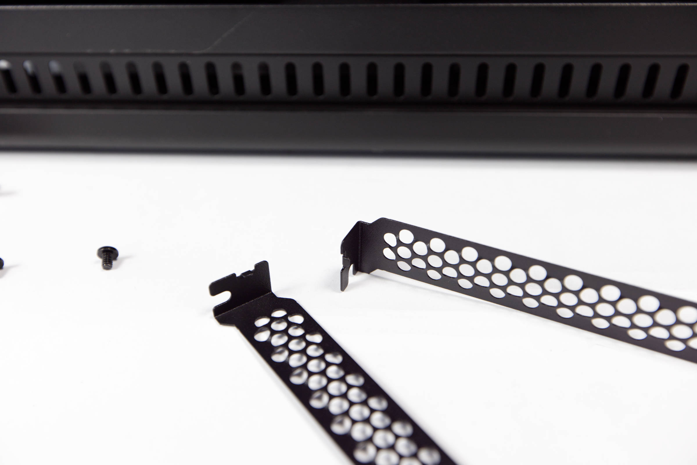 So muss das Top-Panel abgezogen werden und danach eine Metallplatte, die die Schrauben des Radiatorrahmens verdeckt. In diesem Fach kann auch die WiFi-Antenne versteckt werden, jedoch haben wir keine, weshalb die kleine Kammer hinten leer bleiben wird. Sobald die schwarze Metallabdeckung ab ist, löst man zwei Schrauben und kann dann den Rahmen herausziehen. Auf der anderen Seite ist er nur eingehakt.