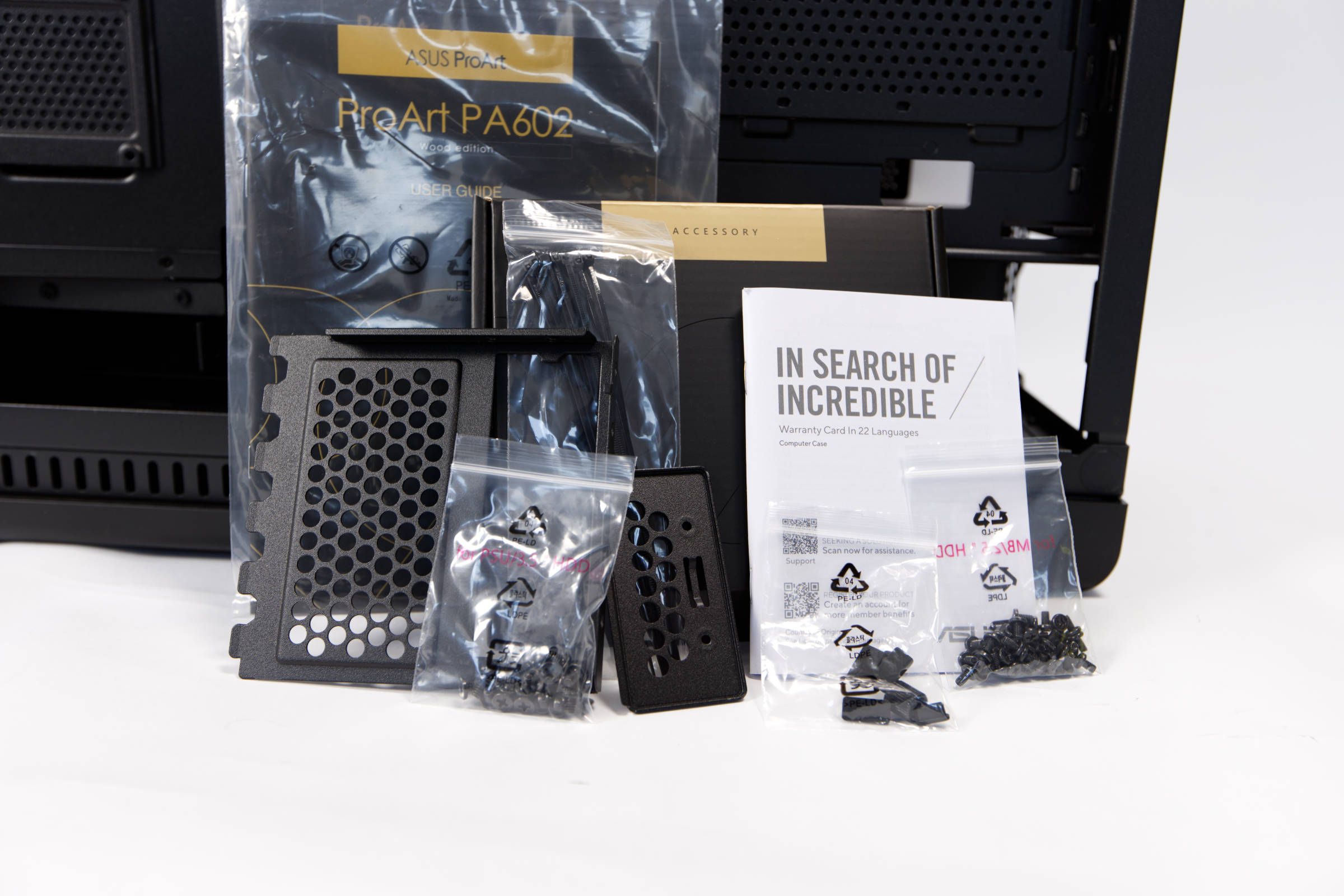 Beim ProArt PA602 gibt es viele Kleinigkeiten, die als i-Tüpfelchen gewertet werden können und wir werden wohl nicht alle einzeln benennen, sondern die, die uns besonders bei der Arbeit mit dem Gehäuse aufgefallen sind. Das Erlebnis beginnt positiv beim Auspacken, denn das Gehäuse ist in einer schicken schwarzen Haube verpackt und hier hat sich jemand wirklich Gedanken gemacht, um das Produkt rund wirken zu lassen.
