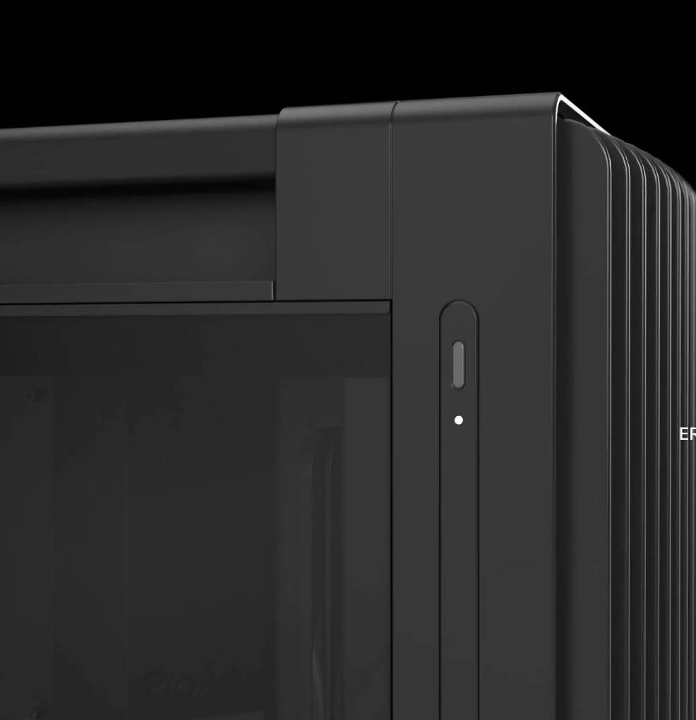 Rechts finden wir den üblichen Power-Button, doch daneben ist ein Lock-Mechanismus, der dafür sorgt, dass der Power-Knopf nicht versehentlich gedrückt werden kann. Es ist wohl nicht nur uns öfter passiert, dass der Power-Knopf versehentlich gedrückt wurde. Bei einer Workstation will man das noch weniger als bei einem Arbeits-PC! Etwas tiefer eingelassen ist die Reset-Taste, damit man sie auch nicht versehentlich drückt.