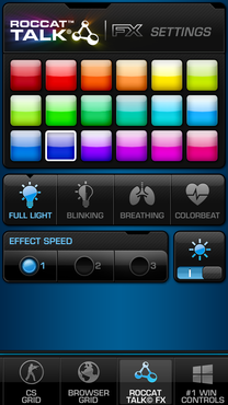 Controls sind einfache Knöpfe, die einem Grid hinzugefügt werden. Dahinter verbirgt sich dann, im simpelsten Fall, der Befehl ein Programm oder eine Datei zu öffnen. Ein Grid hingegen stellt eine ganze Seite in der App dar: ein Grid wird befüllt mit Controls. Ein Grid darf nicht mit einem Tab verwechselt werden. Die Tabs befinden sich in der iOS-App unterhalb und bei Android oberhalb der Grids. Nachdem das also geklärt ist, beginnen wir mit der Erklärung der Controls. Sofern man kein Programmierer ist und sich seine Controls nicht alle selbst programmieren möchte, bietet Roccat eine Menge Control Vorlagen an. Hat man sich für einen der vielen Controls entschieden, ändert sich das Aussehen im Control Editor, der sich in der Mitte befindet. Sofern man sich einen Control ausgewählt hat, der bereits eine Funktion ausübt und ein gewisses Design hat, kann man sich im Control Editor anschauen wie genau dies gemacht wurde. Wenn man sich jedoch für einen leeren Control entschieden hat, lassen sich nun allerhand Einstellungen vornehmen. Funktion, Design, Farbe, Klickverhalten, Sound oder Größe - der Individualität sind keine Grenzen gesetzt. Nachdem man sich also einen Control ausgesucht hat, kann man diesen zu seinem Grid hinzufügen – aber Stopp! Bislang gibt es nur vier fertig designte Grids. Wir wollen jedoch einen neues Grid für unseren Control. Dazu gehen wir auf die ganz rechte Seite und erstellen im oberen Drop Down Menü ein neues Grid. Auch hier sind der Individualität keine Grenzen gesetzt. Name, Farbe und Design lassen sich ändern. Nachdem dies geschehen ist erhalten wir ein leeres Grid. Dieses können wir nun über den Knopf „Auf das Grid“ zu unserem Grid hinzufügen. Hat man all seine Controls fertig und möchte sein selbsterstelltes Grid nun auf dem Smartphone haben, wählt man einfach „Hinzufügen“ und das Programm synchronisiert die Einstellungen mit der App. Sofern man seine selbsterstellten Controls testen möchte bevor man sie auf sein Smartphone Synchronisiert, kann man dies mit einem Rechtsklick auf den jeweiligen Control tun.