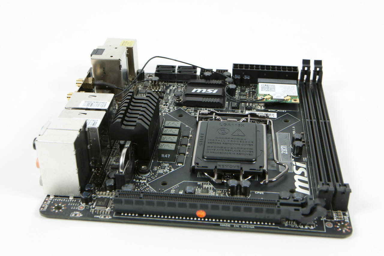 Zwar wirbt auch der taiwanische Hersteller MSI nicht minder als ASUS, doch erlaubt man sich weniger Patzer. Die Ausstattung passt, ist jedoch nicht überragend. WiFi und Bluetooth sind standardmäßig mit an Bord und man bietet auch noch die höchste Performance sowie eine mehr als akzeptable Leistungsaufnahme. Die neuen Kondensatoren scheinen sich auszuzahlen! Weiter gefällt auch die Dual-Lan-Ausstattung, wobei im alltäglichen Gebrauch wohl genauso nützlich wie die zwei zusätzlichen S-ATA-Anschlüsse des ASUS-Boards, also überhaupt nicht. Fast genauso enttäuschend wie beim ASUS-Mainboard: Der Lieferumfang, zwar gibt man immerhin die zwei zu den Anschlüssen passende WiFi-Antennen mit, doch geizt man hier auch mit den S-ATA-Kabeln, wobei augenscheinlich zwei Kabel reichen: Eines für das optische Laufwerk und eines für einen Datenspeicher, doch finden in den meisten ITX-Gehäusen zumindest zwei 2,5" Platten sowie ein optisches Laufwerk Platz, sodass unserer Meinung nach bei ASUS und MSI mindestens drei S-ATA Kabel mitgeliefert werden sollten.
