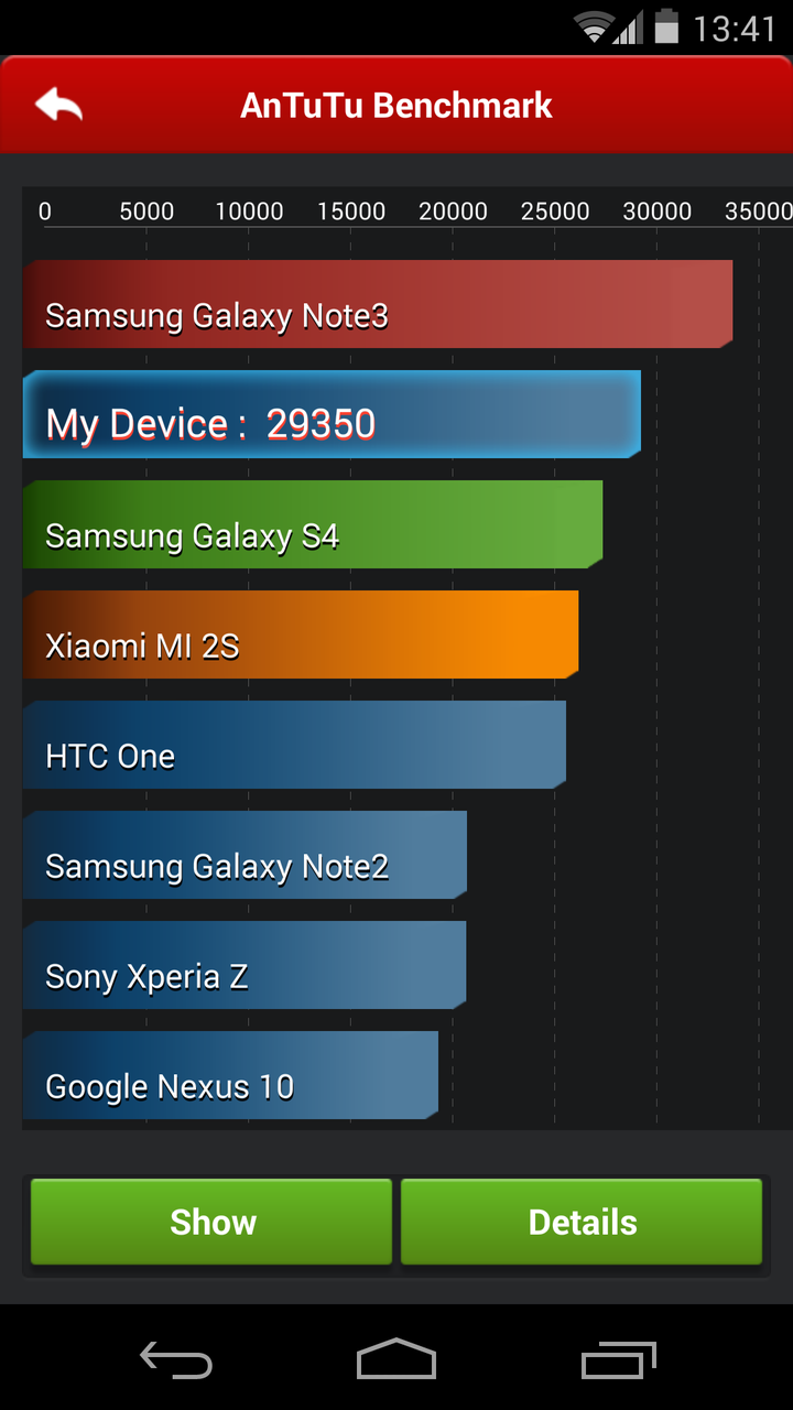Hier kann das neue Google-Smartphone aus dem Vollen schöpfen, denn das Unternehmen spendiert seinem Nexus-Device die beste Hardware-Ausstattung, die derzeit erhältlich ist. So werkelt im Nexus 5 ein schneller Qualcomm Snapdragon 800-SoC nebst potenter Adreno 330-GPU sowie 2 GB RAM. Die geballte Leistung des Gerätes macht sich natürlich auch bei Benchmarks und Spielen bemerkbar, denn hier räumt das Smartphone richtig ab. Egal ob Antutu, 3DMark oder Quadrant, dass Nexus 5 muss sich hier nur einem Device knapp geschlagen geben; dem Samsung Galaxy Note III. Grafisch anspruchsvolle Spiele, etwa Modern Combat 4: Zero Hour oder Asphalt 8: Airborne, laufen absolut flüssig auf dem Full HD-Display; besser geht es wirklich nicht. Was aber auffällt, und eigentlich auch logisch ist: Je mehr das Smartphone gefordert wird, umso wärmer wird es. Allerdings erreicht die Wärmeentwicklung nie einen kritischen Status, der sich störend auf den Betrieb auswirkt.