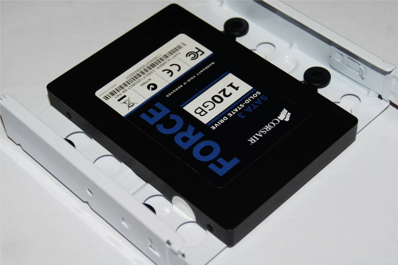 Eine Besonderheit stellt im Arc XL die hohe Variabilität bei der Festplattenmontage dar: Maximal lassen sich bis zu acht Laufwerke im 2,5- oder 3,5-Zoll-Format in einem Festplattenträger unterbringen, der in zwei Module geteilt ist. Das obere Segment lässt sich hierbei nicht nur durch das Herausdrehen zweier Thumbscrews entfernen, was die maximale Grafikkartenlänge erhöht; sondern wahlweise auch längs oder quer zum Luftstrom ausrichten, um den jeweils idealen Kompromiss aus Kühlleistung und leichter Erreichbarkeit der Laufwerke zu erlangen. Das Neuausrichten des unteren Abteils ist hingegen nur unter Zuhilfenahme eines Schraubenziehers möglich; hier ist dafür neben einer Rotation um 90 Grad auch in zwei Stufen ein Verschieben in Richtung des Netzteils möglich, um eine Radiatormontage am vorderen Lüfterträger zu realisieren. Zwei weitere Montagebuchten, die diesmal ausschließlich der 2,5-Zoll-Zunft vorbehalten sind, befinden sich an der Rückseite des Mainboard-Trägers.