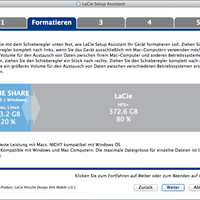 Eines haben beide Platten gemeinsam. Sie sind speziell für das MacBook konzipiert und daher schon im Mac-typischen HFS+ formatiert. Somit kann sofort gestartet werden und es muss nicht erst noch großartig im Festplattendienstprogramm agiert werden. Allerdings kommen Windows-Benutzer wohl nicht drum herum, hier selbst Hand anzulegen. Die LaCie bringt für diese Zwecke ein Setup auf der Platte mit, wo man als Anwender direkt ein Teil des Speichers als FAT32 formatieren kann. Oder nach Belieben auch die komplette Platte. Möchte man NTFS, muss sowieso manuell formatiert werden. Beide Platten werden von Anfang an einwandfrei durch das Testsystem erkannt. Die G-Drive slim kommt komplett ohne Software daher, deshalb ist die Festplatte sofort einsatzbereit. Von der offiziellen Homepage von G-Technology wird zur Perfektion nur noch die Icon-Sammlung heruntergeladen, um der Platte auch das passende Mac-Symbol zuzuweisen. Der Hersteller beschreibt dabei alles recht einfach und verständlich. Auf der LaCie-Platte befinden sich bereits mehrere vordefinierte Ordner. Die LaCie bringt, wie schon erwähnt, direkt ein Setup mit. Dieses bietet während des vierten Punktes die Möglichkeit, Software zu installieren. Neben einem Backupprogramm und einem Desktop-Manager steht auch ein Verschlüsselungsprogramm und mehr zur Verfügung. Das Ganze funktioniert auch auf Windows, da LaCie passende Exe-Dateien sofort mitliefert. Auch das Festplattenicon, welches wir bei der G-Drive slim noch manuell tauschen mussten, wird automatisch mit eingefügt.